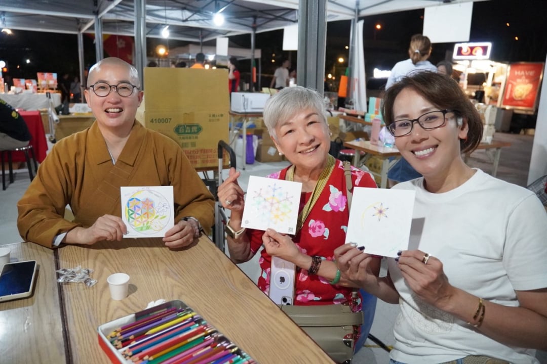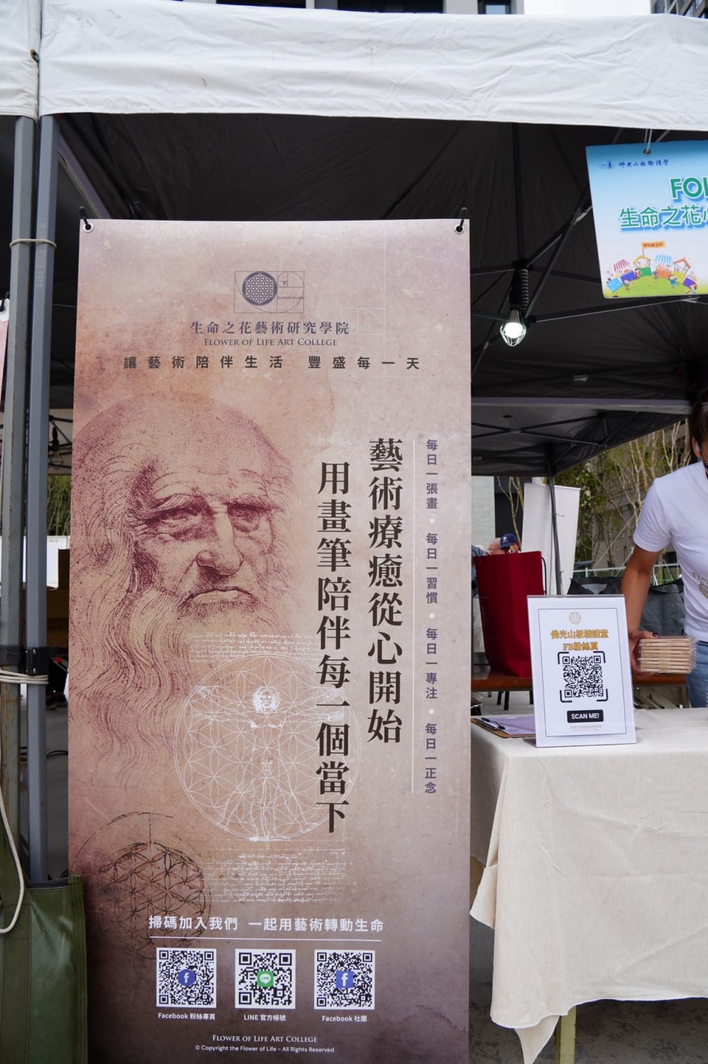 在充滿祥和與溫情氛圍的佛光山浴佛節暨母親節三好蔬食市集中,FOL學院首次設攤參與,透過視覺藝術與創作體驗,帶來結合節慶與能量的心靈陪伴活動,讓民眾在逛市集之餘,也能感受到藝術療癒的美好與溫度。
