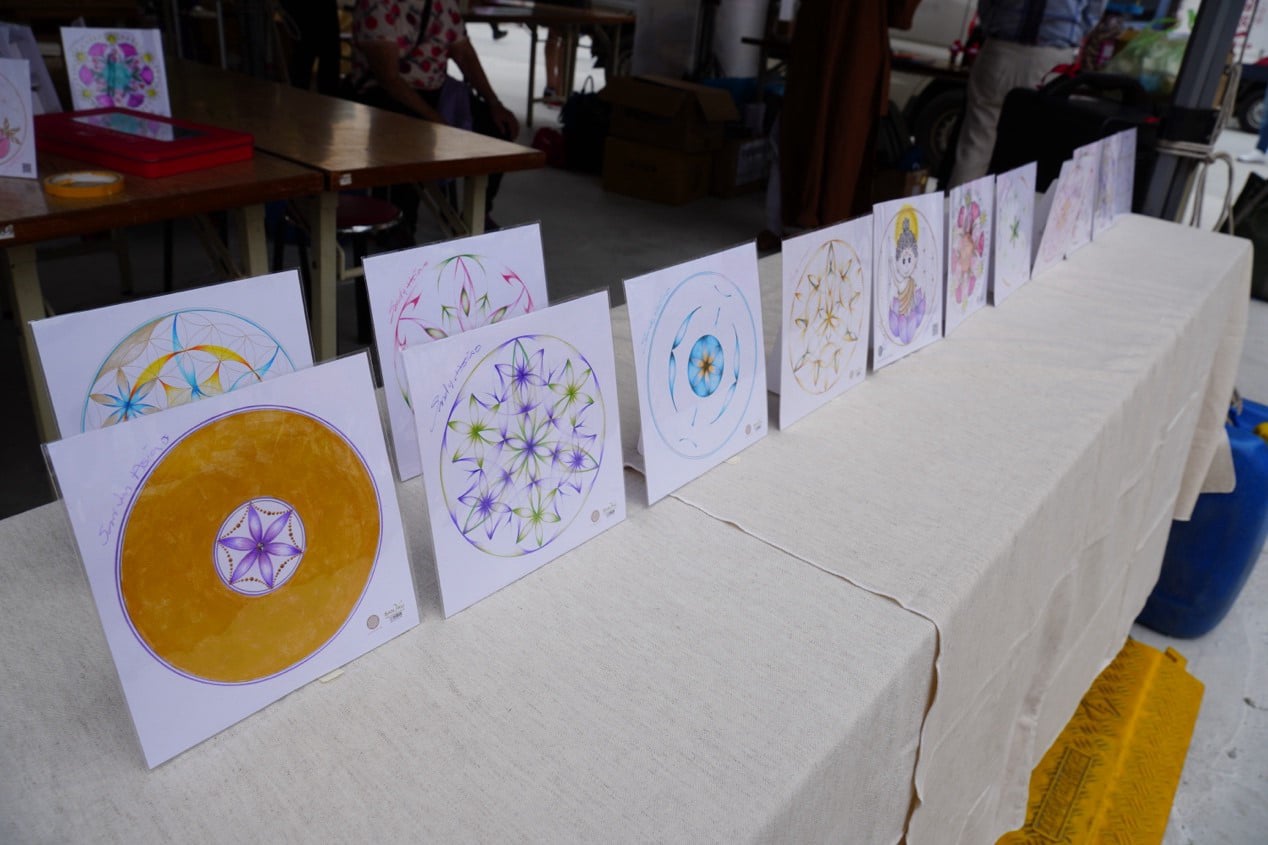 • 藝術周邊展示櫃:包含「生命之花畫卡套組」、「梅爾卡巴幾何杯墊」等多款商品,引起不少民眾詢問與共鳴。